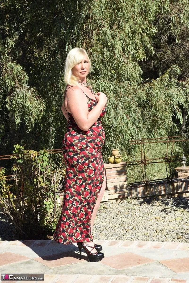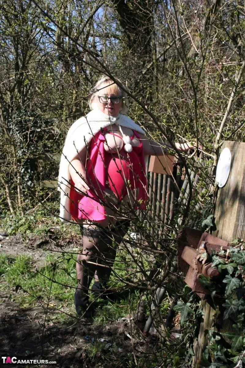 - 4. Зрелая толстушка Фанни играет со своей киской в бодистоке без чашечек и промежности.
