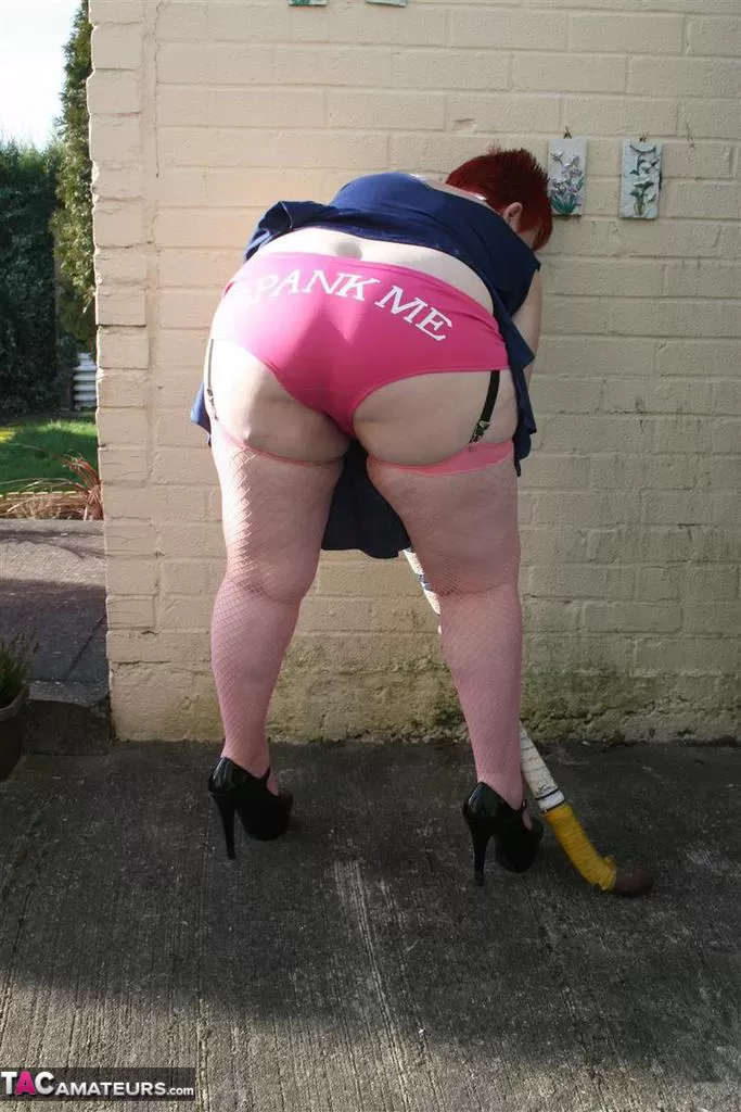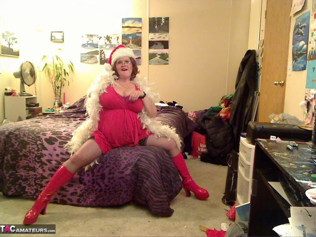 - 5. Зрелая толстушки кудрявая Кэрол раздевается в нижнем белье и ОТК сапогах на лестнице.
