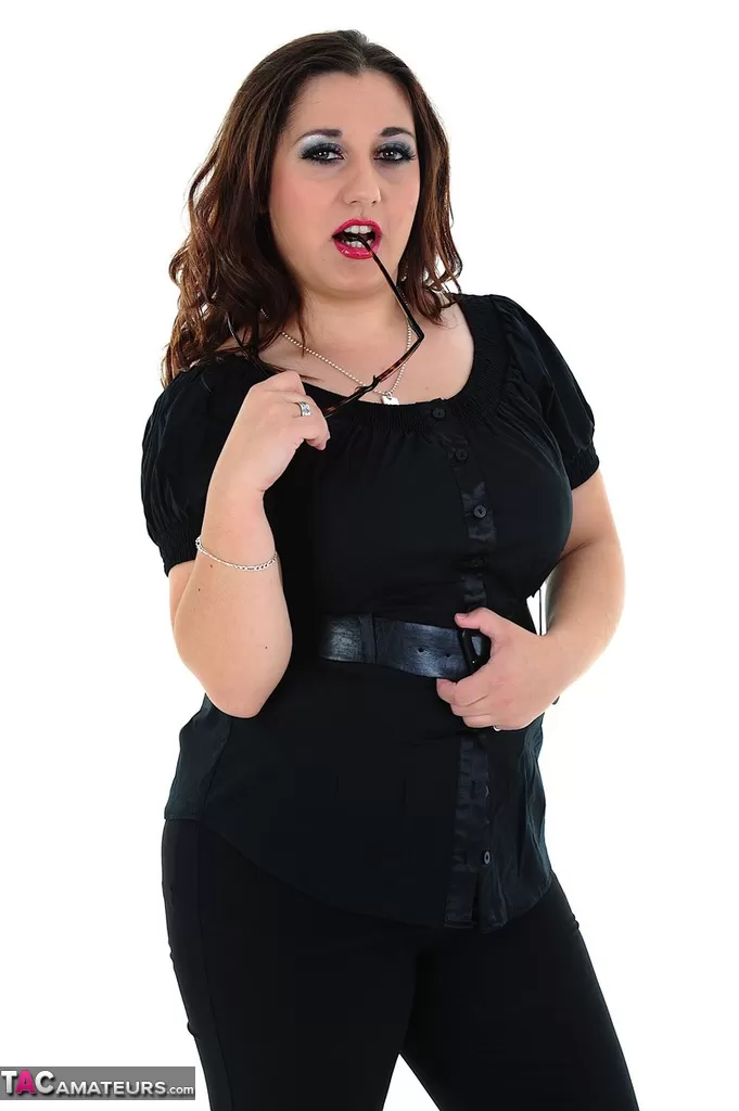 - 4. Любительская толстушка Каролина показывает свою дряблость в обнаженном виде в очках.