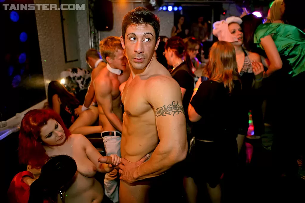 - 2. Молодую малестриперку лапают и сосут тусовщицы.