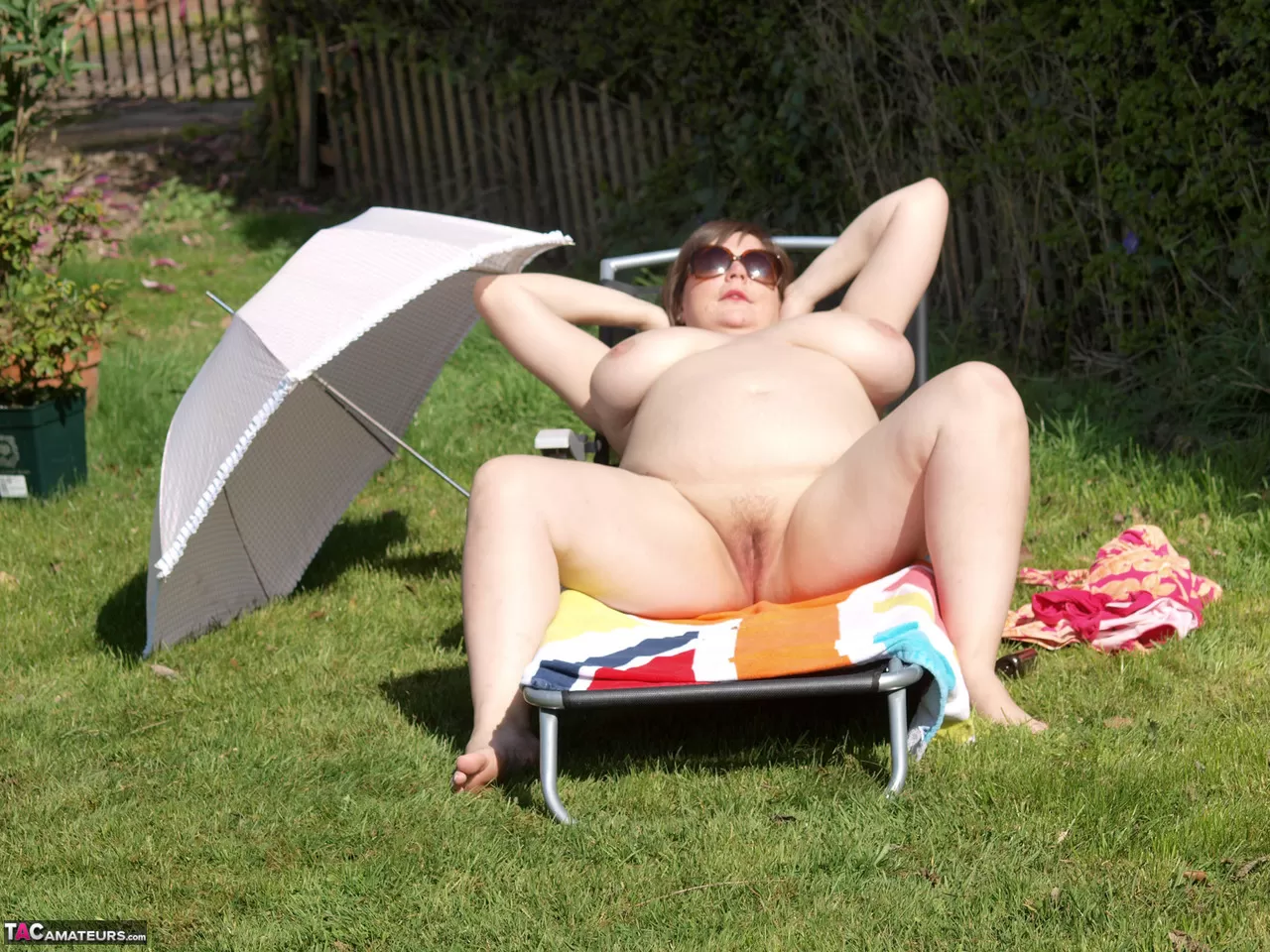 - 4. Любительская толстушки Рокси раздевается в солнцезащитных очках на открытом воздухе на шезлонге.