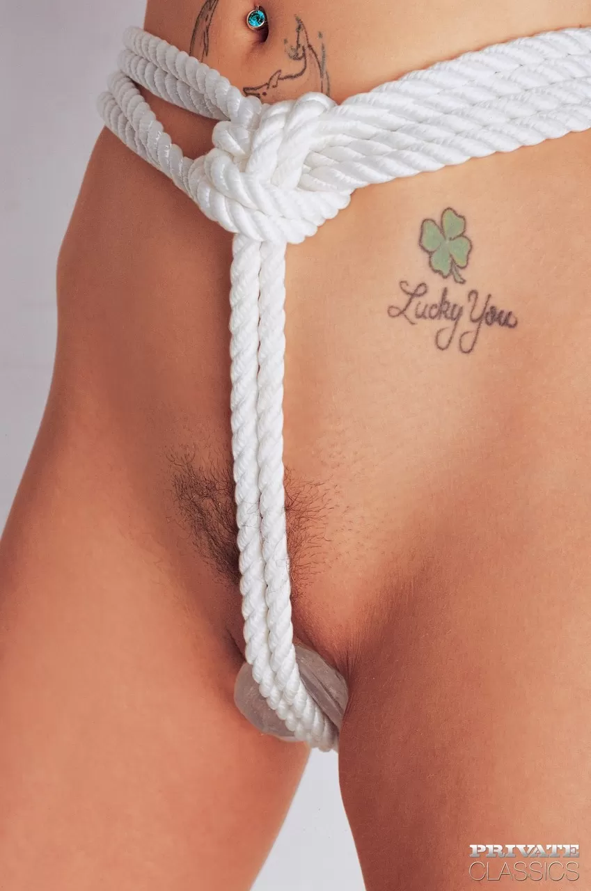 - 4. Симпатичная девушка Лиза Уэлч показывает волосатый куст в винтажных чулках на открытом воздухе.