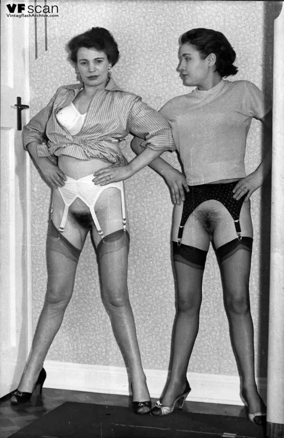 - 1. Королевы винтажного порно задирают юбки, чтобы показать свою волосатую муфту.