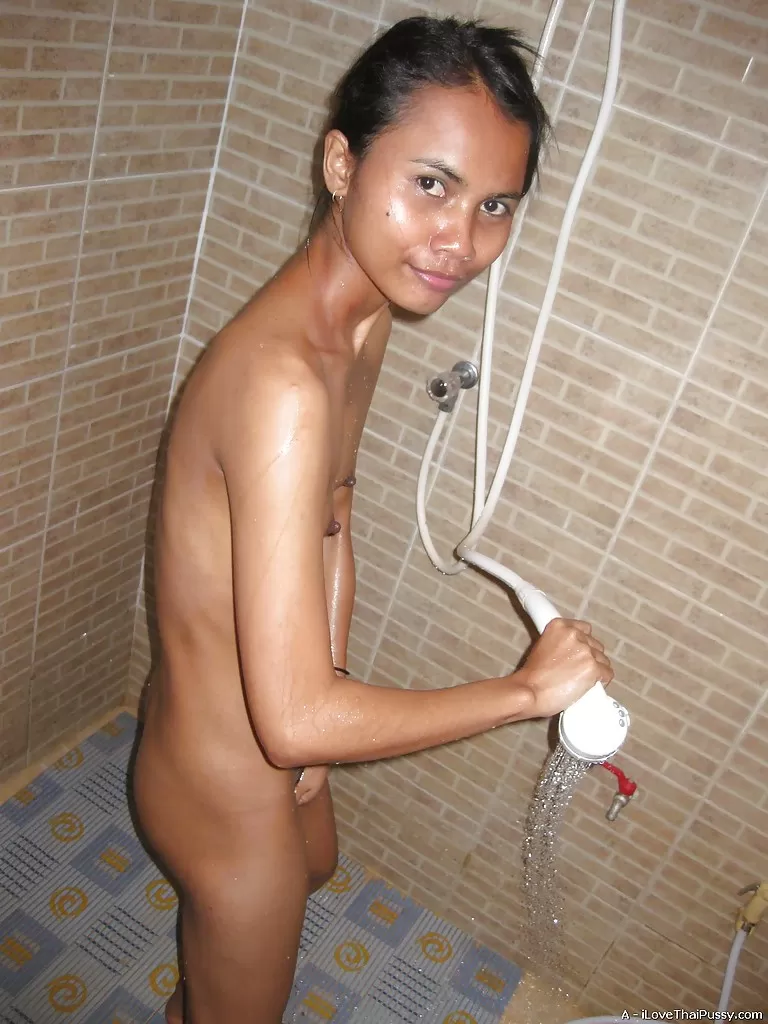 - 5. Худая азиатка снимает белый бюстгальтер и нижнее белье, чтобы позировать без одежды.