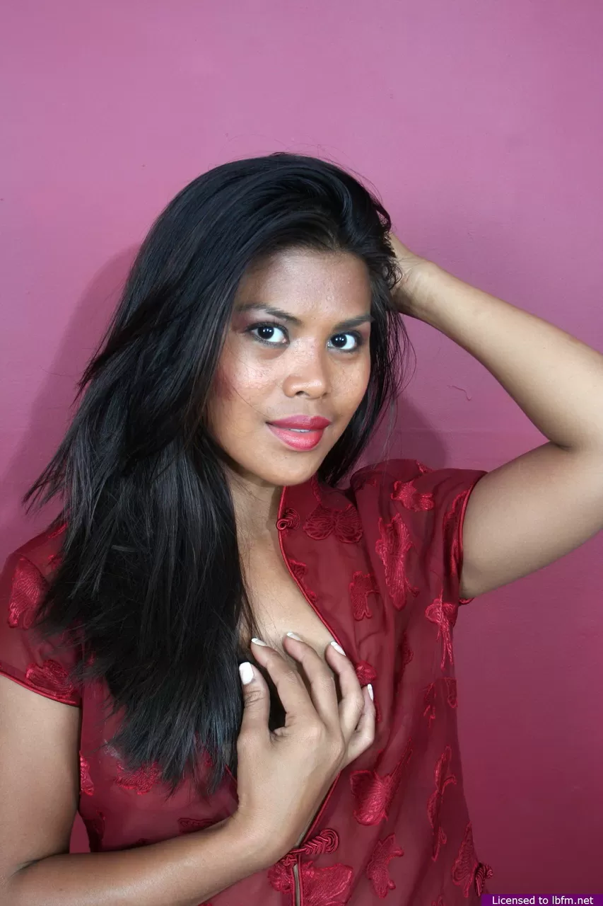 - 3. Азиатка Дана Весполи освобождает свои сиськи и киску от красного платья.