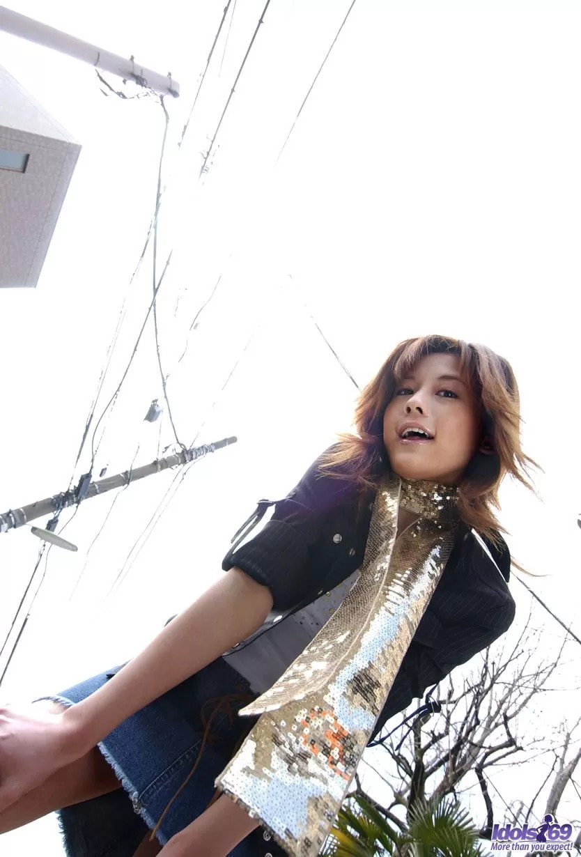 - 4. Японская молоденькая Мийо сверкает своими сиськами и трусиками в сольном действии.