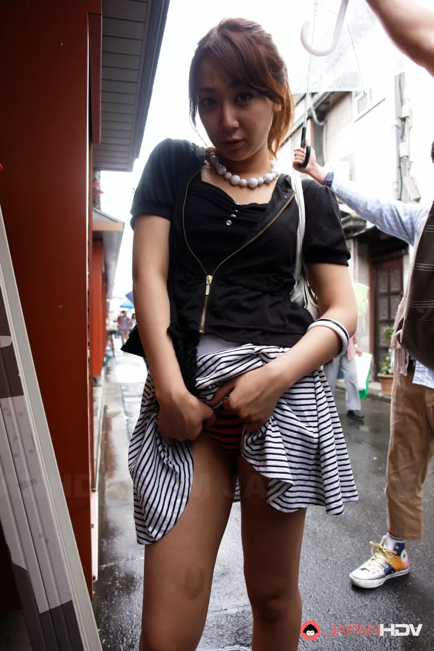 - 3. Симпатичная японская девушка Нами Огава показывает трусики под юбкой снаружи, прежде чем раздеться.