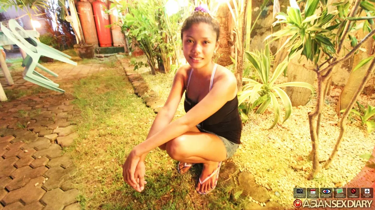 - 1. Симпатичная молоденькая филиппинка обнажает свою полную грудь, раздеваясь догола.