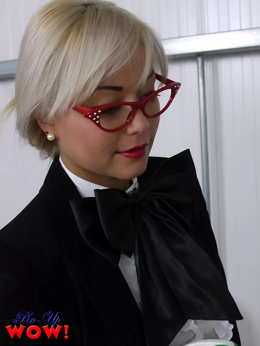 - 4. Азиатская секретарша Луиза Лу обнажает свои крошечные сиськи в поясе с подвязками и нейлоновых чулках.