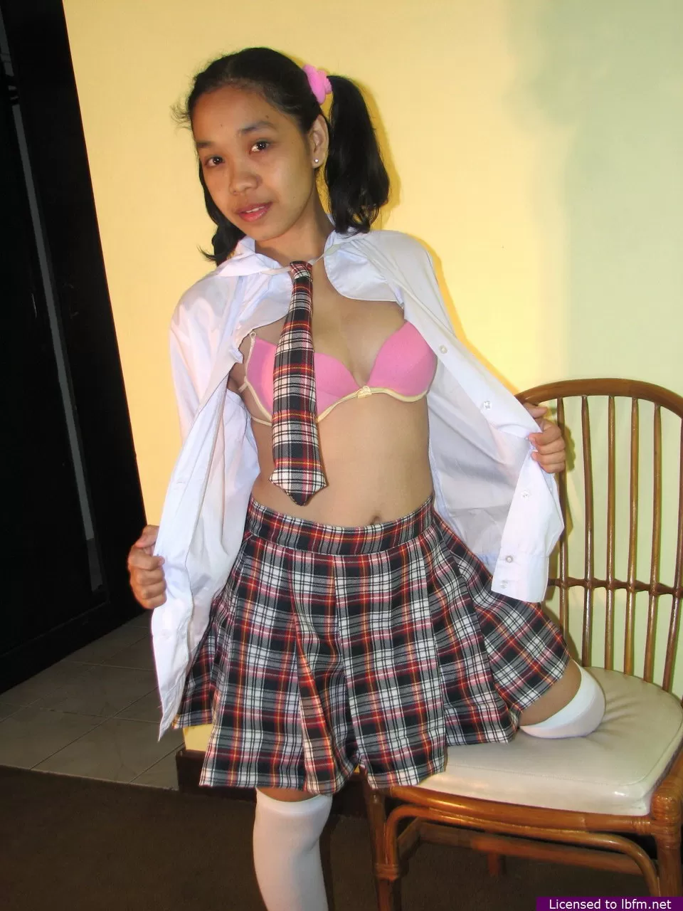 - 2. Крошечный подросток Алекс Де Ла Флор снимает школьную форму, чтобы позировать обнаженной в галстуке и носках.