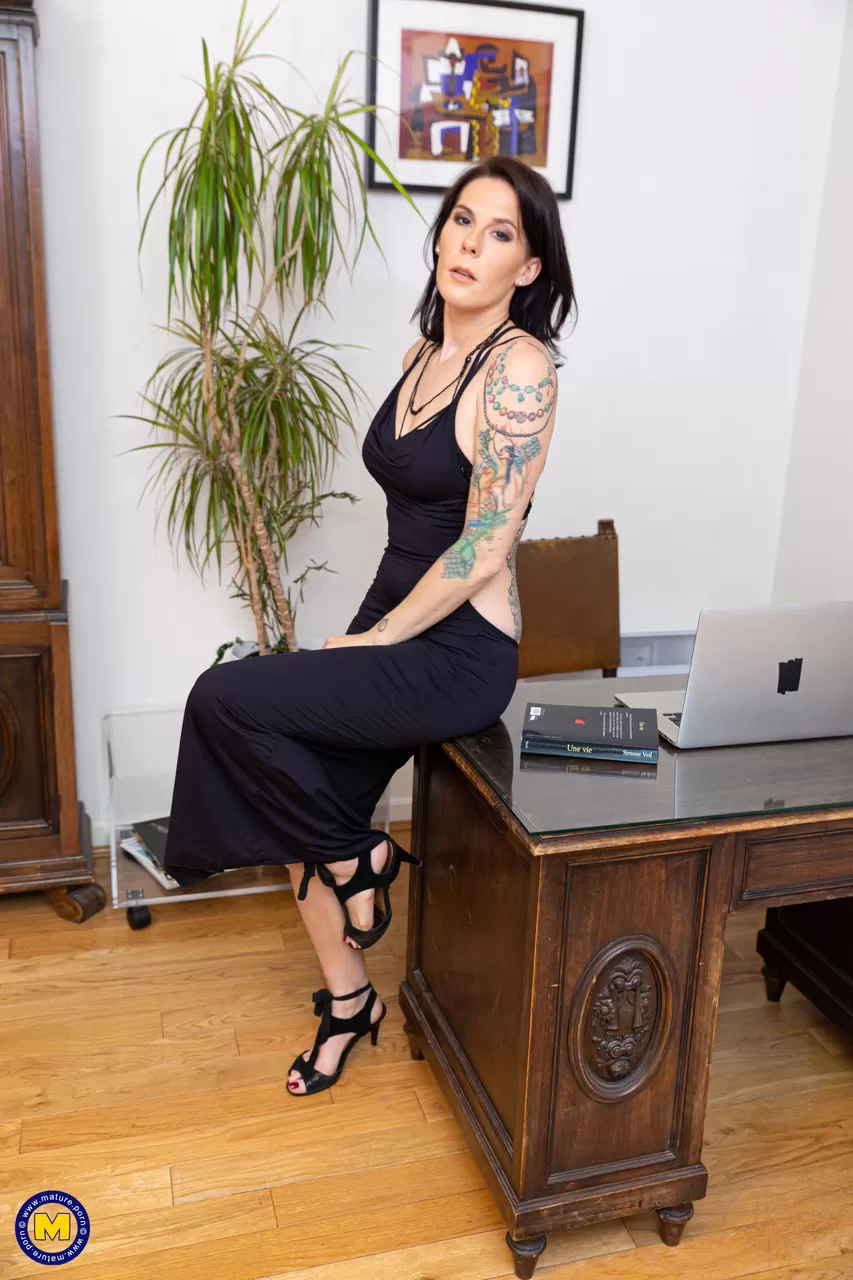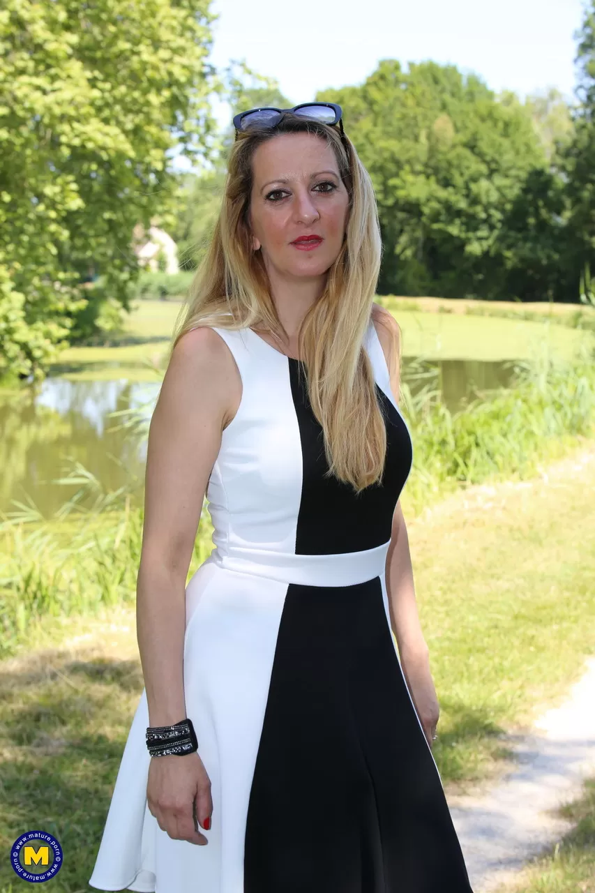- 3. Пожилая блондинка милфа снимает прозрачное нижнее белье и кружевные трусики, чтобы позировать голышом.