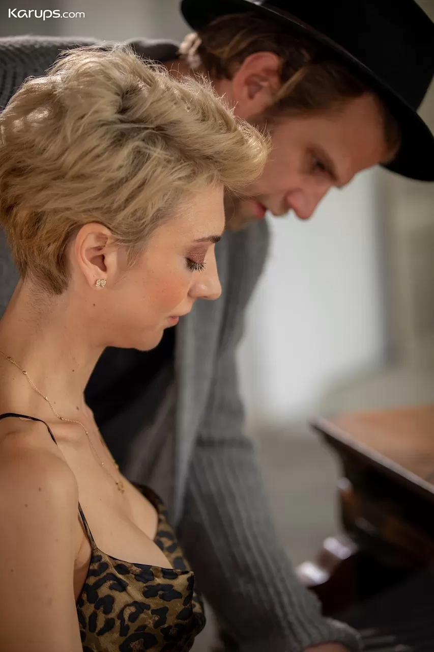 - 5. Похотливая пума приводит молодого жеребца домой и трахает его в чулках на диване.