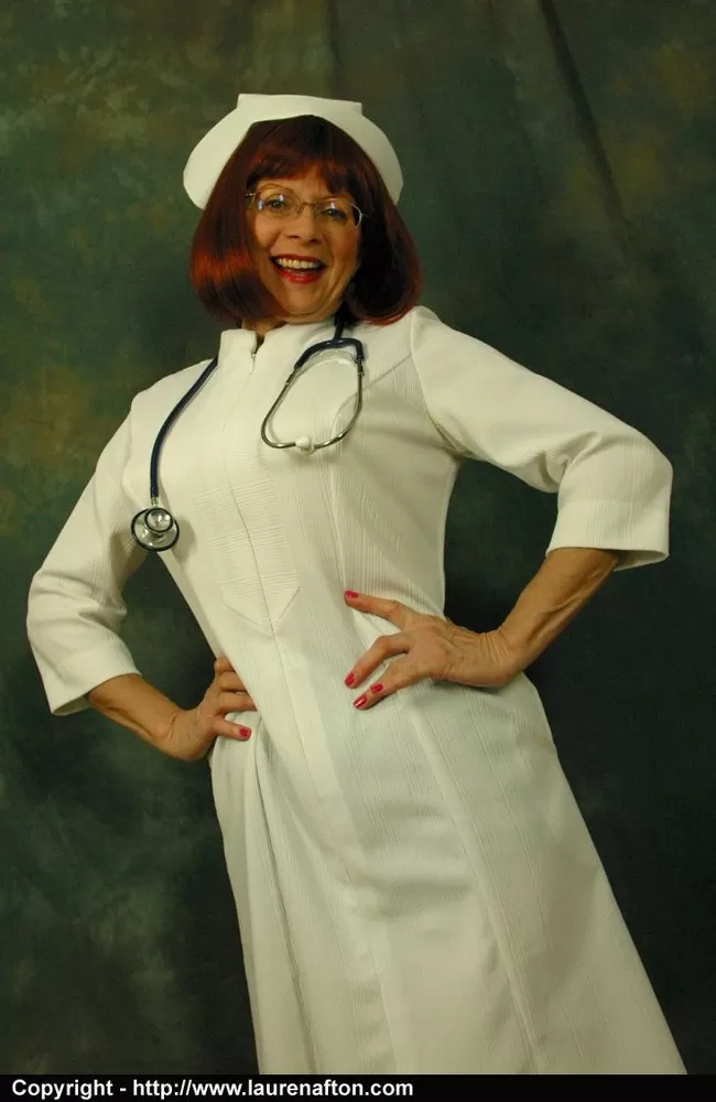 - 1. Британская медсестра раздевается до нейлоновых чулок и шапочки в конце рабочего дня.