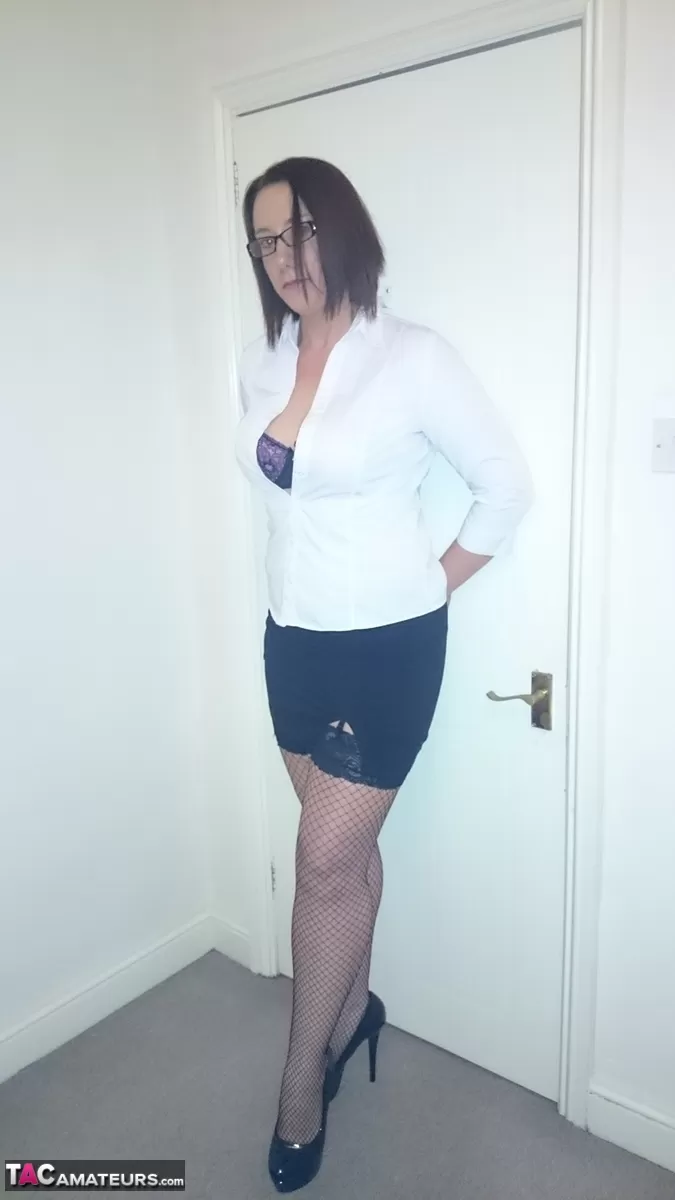 - 4. Толстая пожилая женщина Сэмми шлюха освобождает свои сиськи и пизду от школьной одежды.